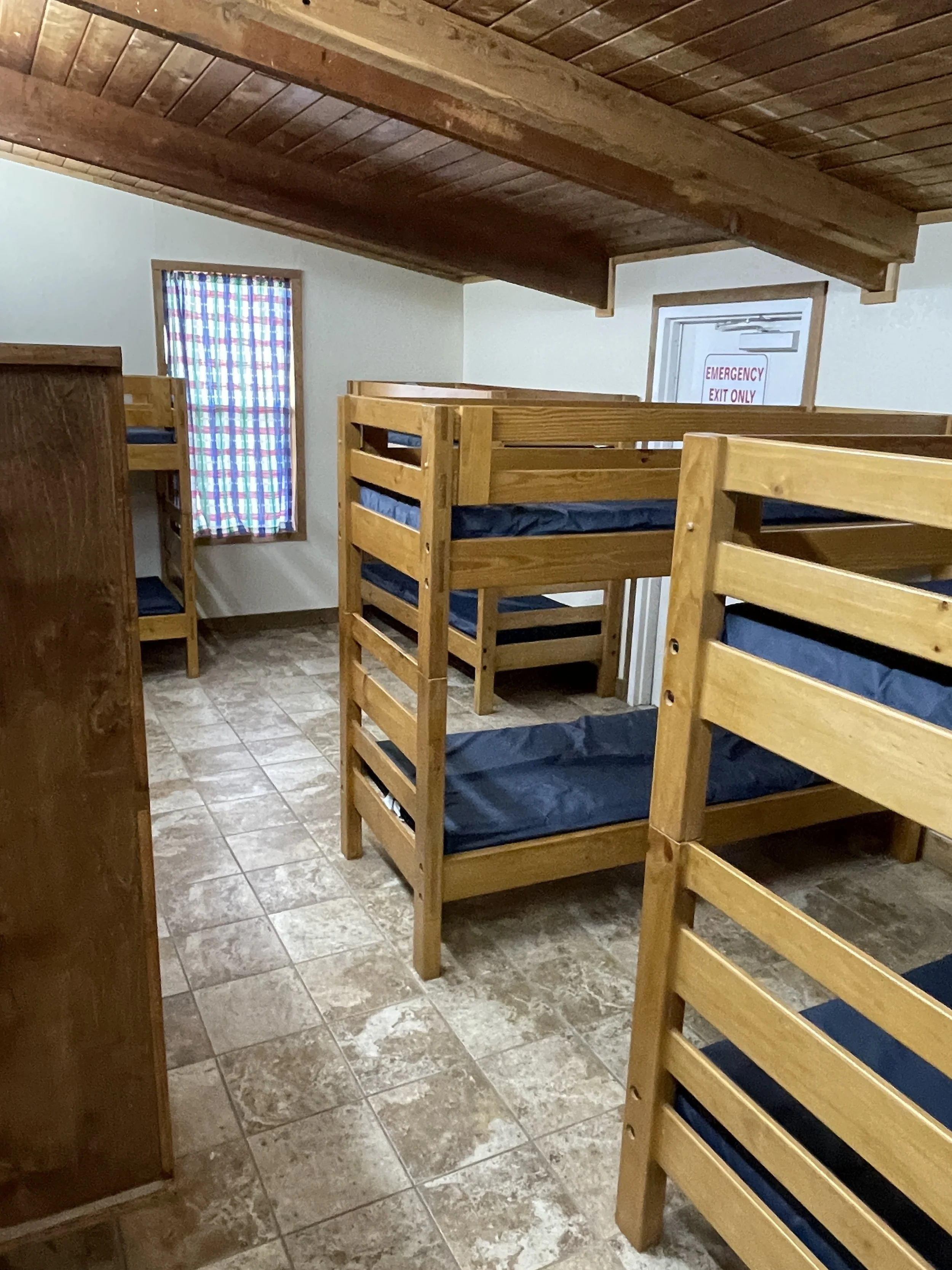 2 dorm-style bedrooms with 6 bunk beds in each room. This building can accommodate up to 24 people.